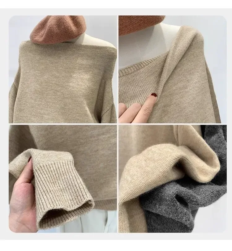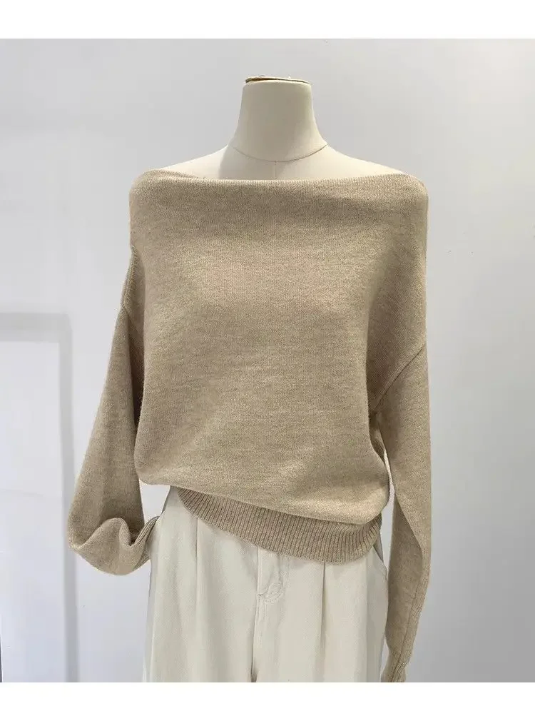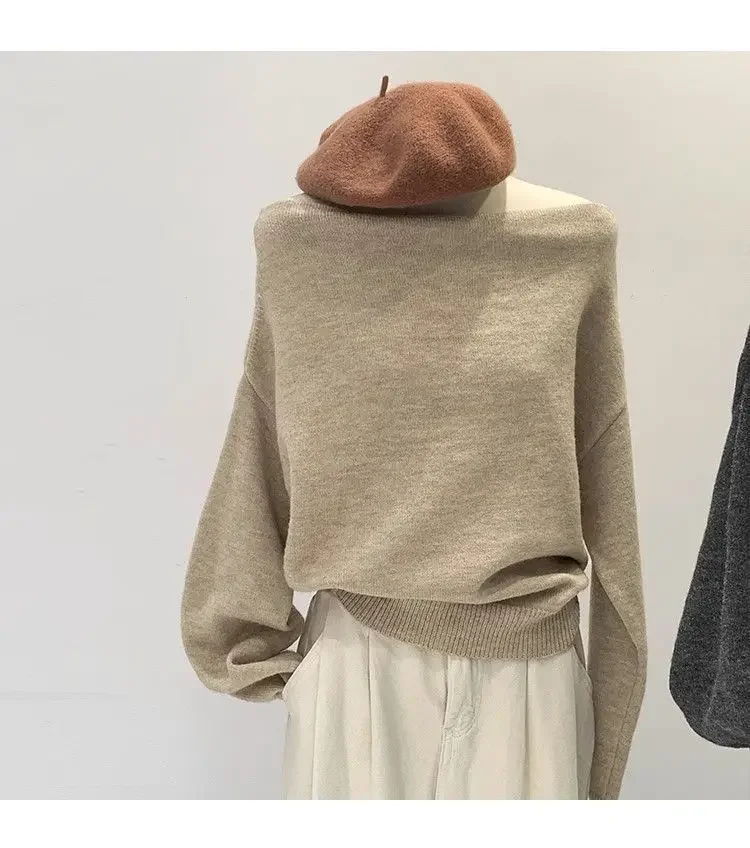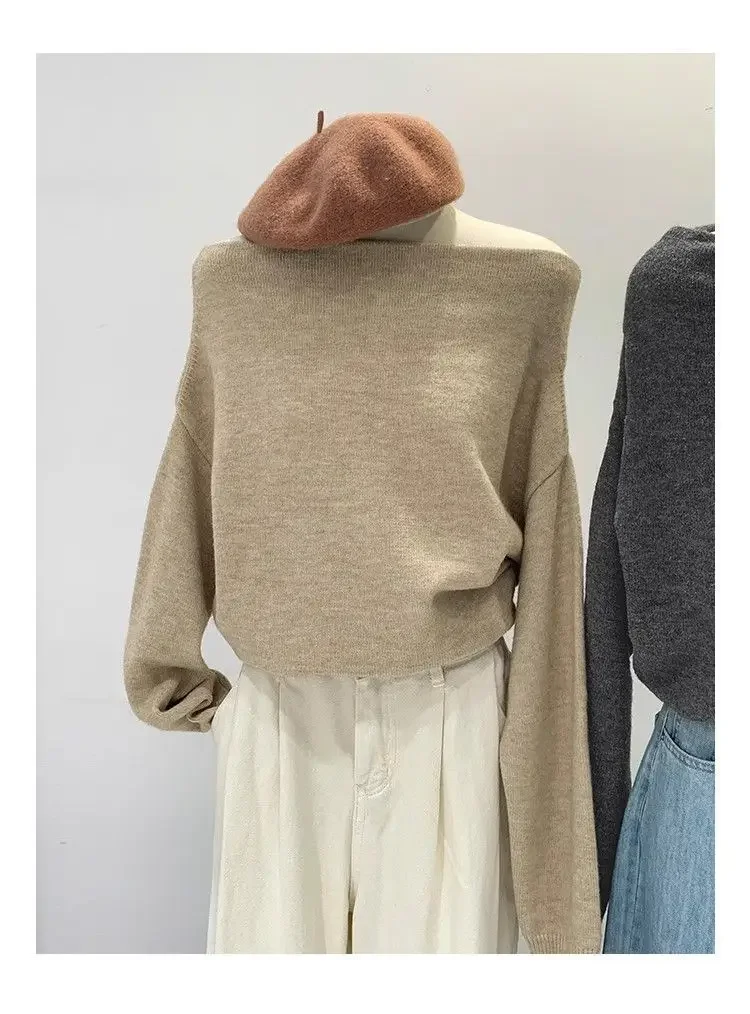 • French Style Design: Embrace elegance with this French-style lazy loose, off-shoulder knitted base shirt, perfect for autumn and winter fashion.